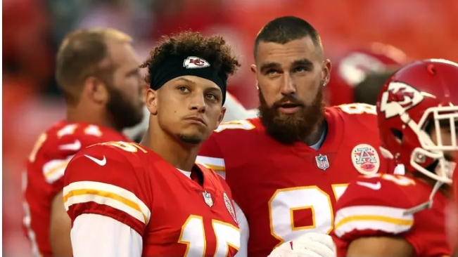 Kansas City Chiefs tight end Travis Kelce and quarterback Patrick Mahomes